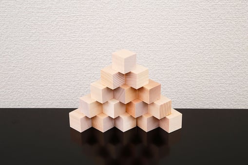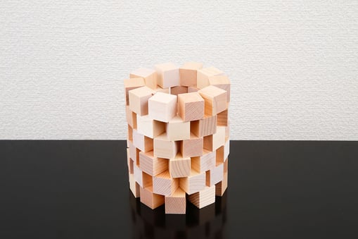 正方形のキューブサイズという制限の中から作品をつくりあげていくブロックです。正方形の木片を使って様々な形を創り出す中で、子どもの想像力と創造力を刺激します。